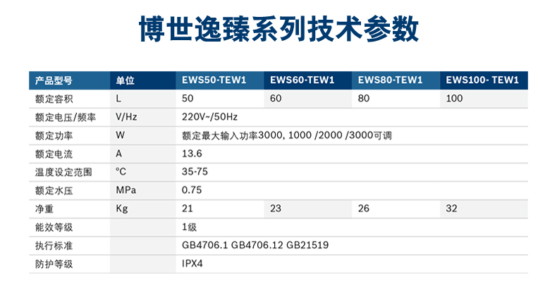 熱水器提供1000W/2000W/3000W三種輸入功率供選擇,用戶可根據(jù)實際使用需要選擇不同加熱功率,即提高加熱速度,又避免不必要的能源浪費。