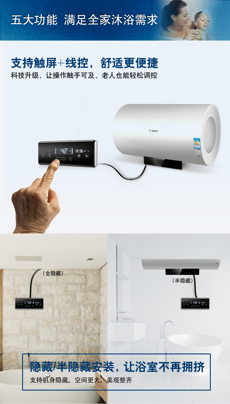 電子式控制,無機體控制器,遠(yuǎn)程線控器,可隱藏或半隱藏安裝??蛇x容積為50L/60L/80L/100L。