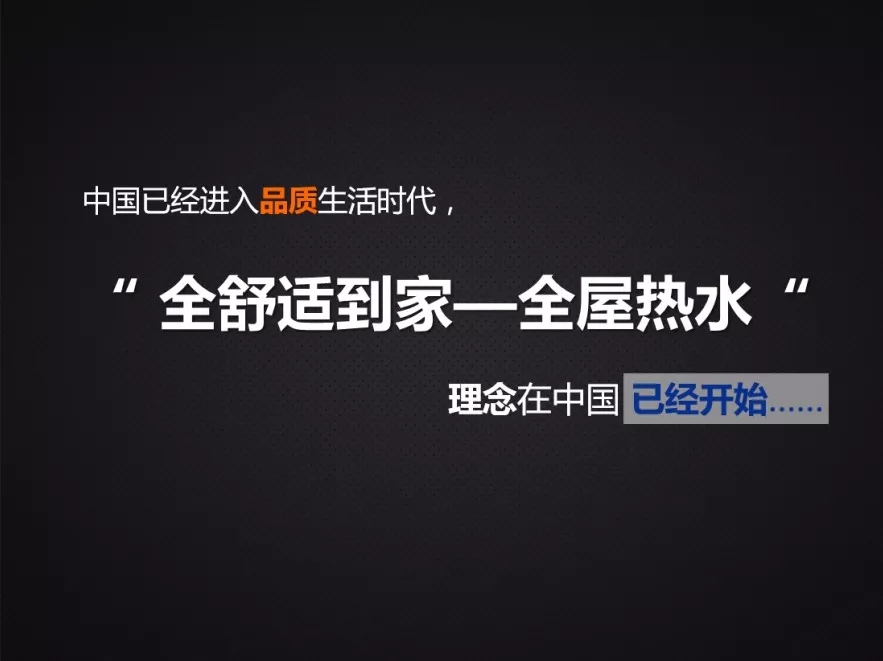 中國已經(jīng)進(jìn)入品質(zhì)生活時代,消費(fèi)逐步升級,“全舒適到家—全屋熱水”理念在中國已經(jīng)開始,全屋熱水時代已經(jīng)到來。未來邁能會為大家提供更多有價值的解決方案,謝謝!